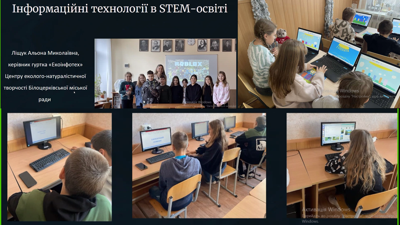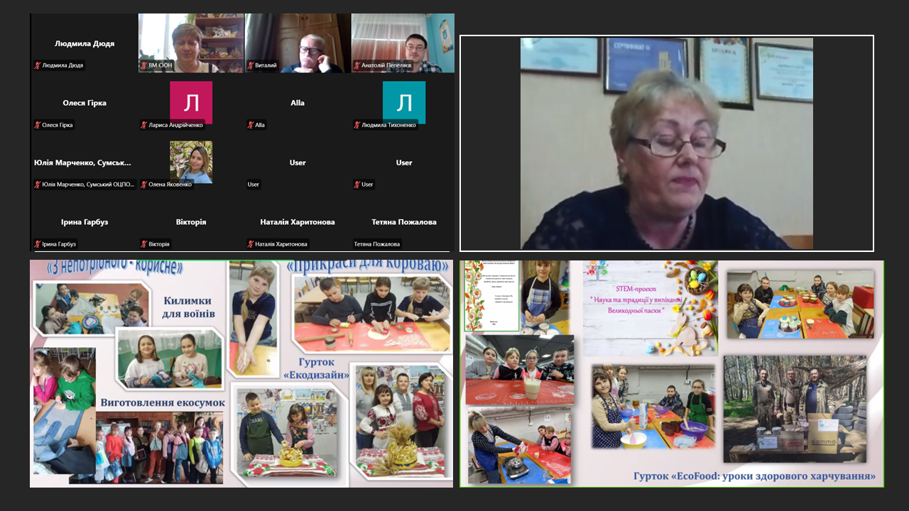 Учасникам зустрічі було презентовано обласний природоохоронний проєкт «ЕкоНезламні: 4 сезони» як елемент STEM-освіти в позашкільній освіті Київщини та практичний досвід впровадження проєктних методик у діяльність закладів позашкільної освіти, зокрема в гурткову роботу, на прикладах STEM-проєктів Васильківської станції юних натуралістів і STEM-лабораторії «Речники майбутнього» Катюжанського опорного ліцею Димерської селищної ради, а також досвід використання інформаційних технологій у гуртках еколого-натуралістичного напряму Центру еколого-натуралістичної творчості Білоцерківської міської ради.