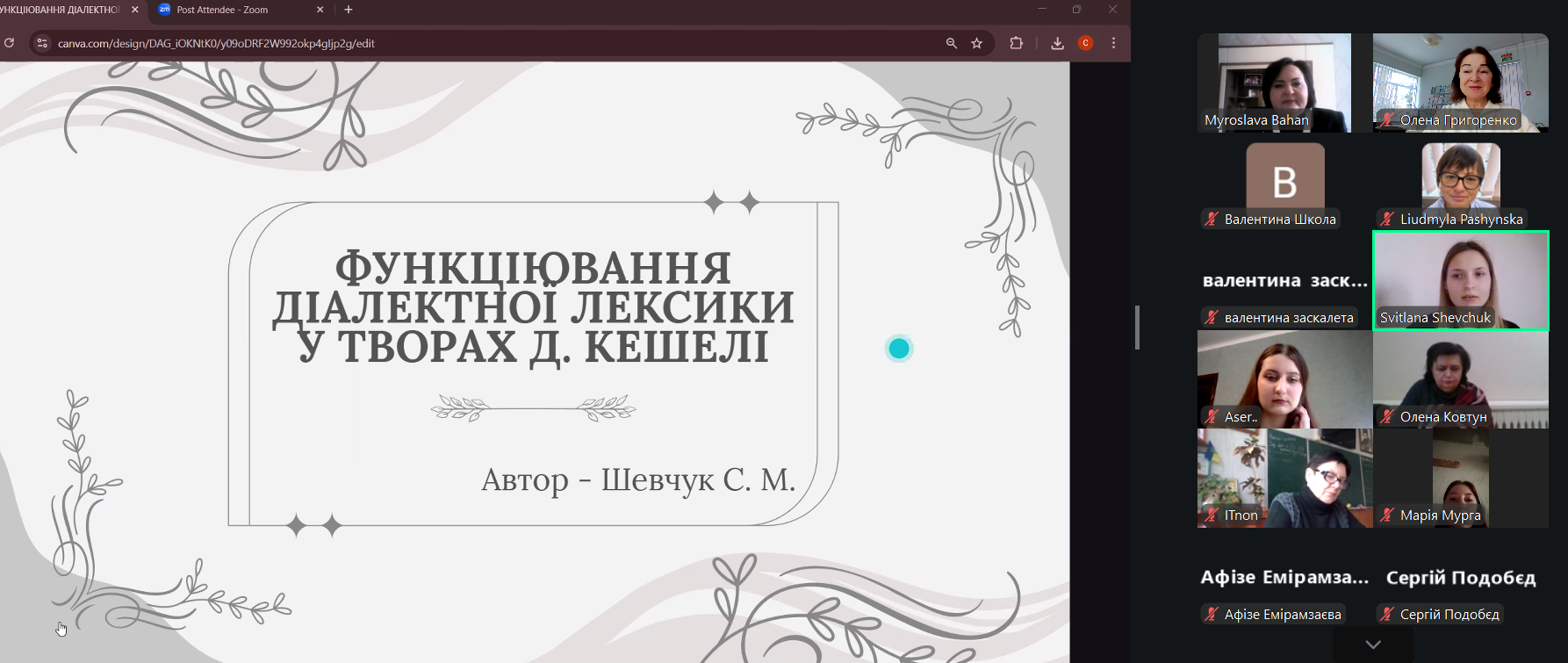 Про функціонування діалектної лексики у творах Дмитра Кешелі захопливо розповіла студентка магістерського рівня Софія Шевчук, продемонструвавши, як художній текст зберігає й актуалізує мовну різноманітність.