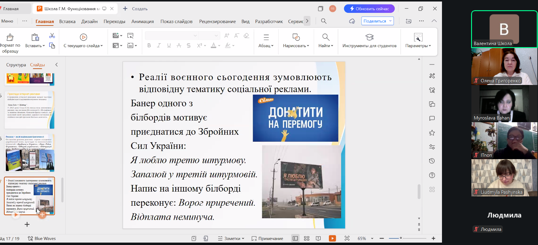Завершальним акордом стала доповідь кандидатки філологічних наук, доцентки Галини Школи, присвячена функціонуванню мовних засобів у рекламних текстах – яскравий приклад того, як мова працює в просторі щоденної комунікації.