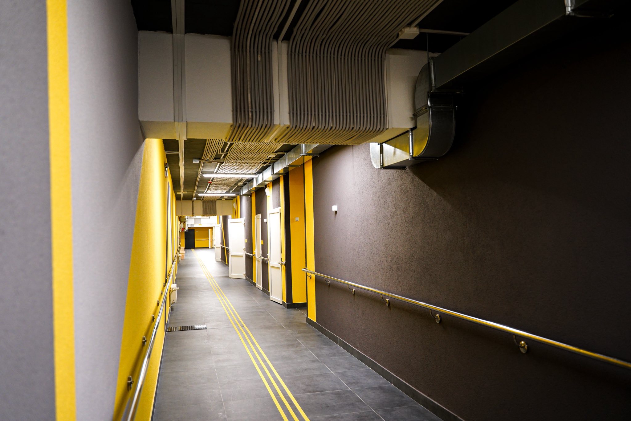 Це нове протирадіаційне укриття подвійного призначення площею 873,31 м². Фактично — сучасна захисна споруда цивільного захисту, частково заглиблена, з усіма необхідними інженерними рішеннями, фільтровентиляційними системами, медичним блоком, санітарними приміщеннями, індивідуальним тепловим пунктом, пожежною сигналізацією та внутрішнім протипожежним водопостачанням. Передбачена повна доступність для маломобільних груп населення — без бар’єрів, із пандусами та тактильними елементами.