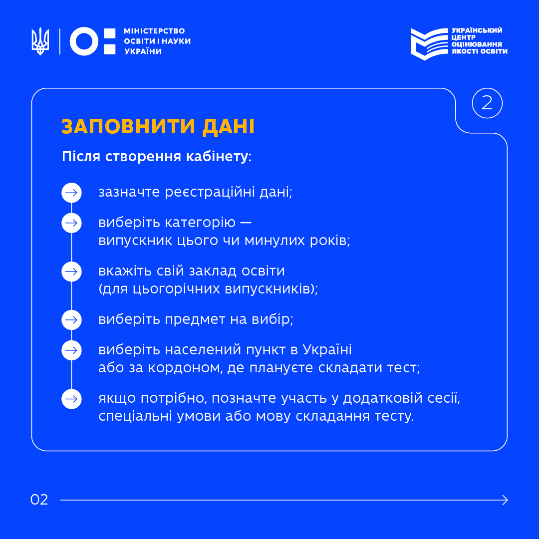 - Створити персональний кабінет на сайті УЦОЯО;