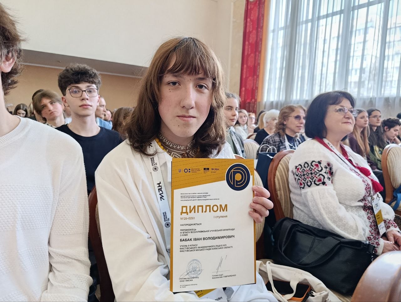 Бабака Івана, учня 9 класу Фастівського академічного ліцею № 9, золотого призера олімпіади, який виборов І місце;